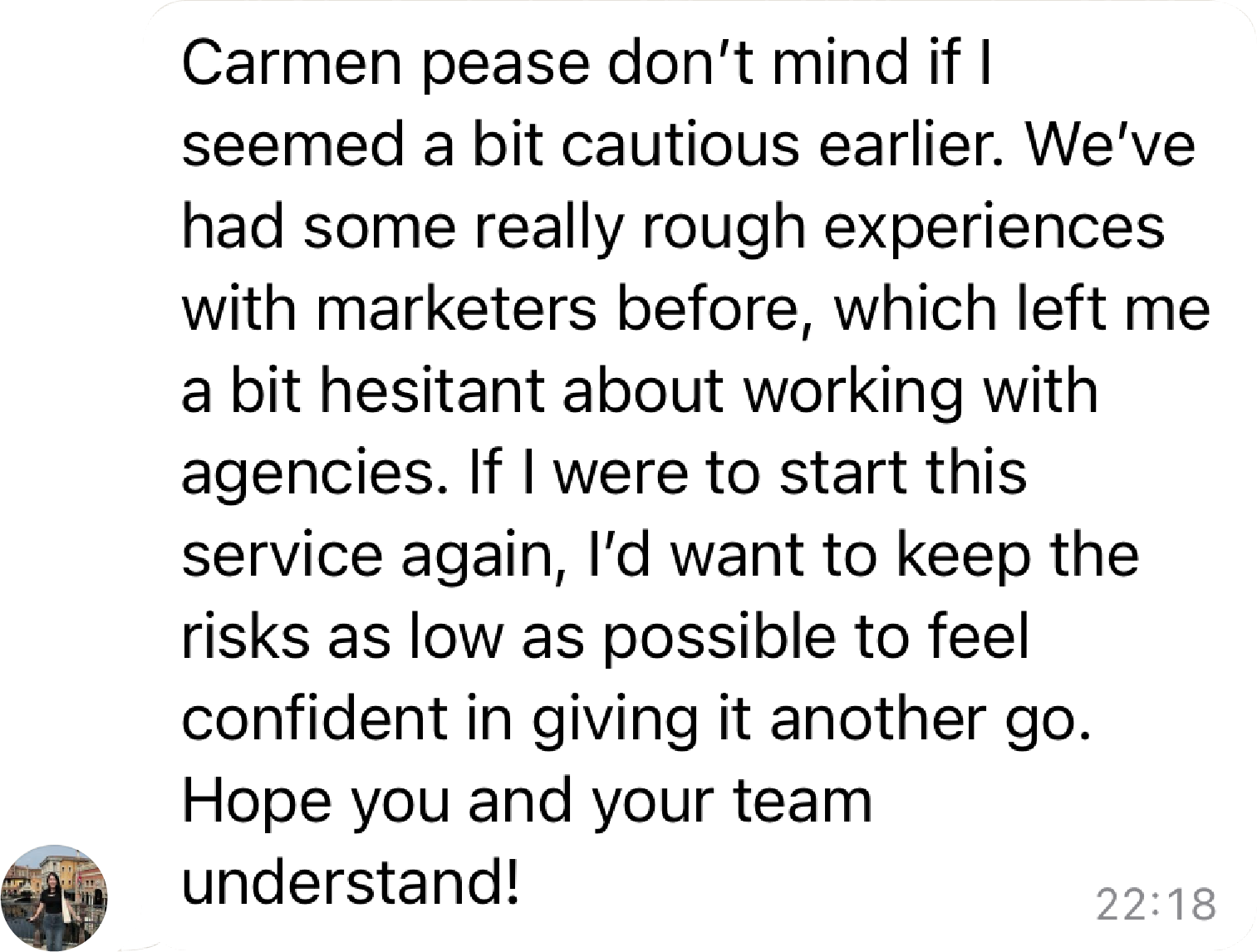 Agencies focus on getting paid monthly, not making real impact. You're just another account.